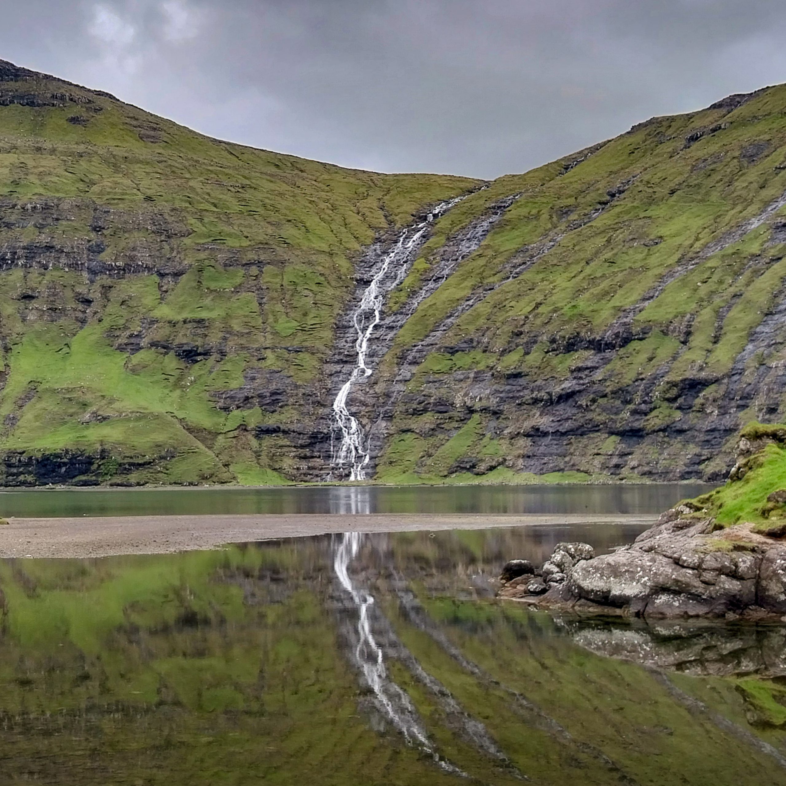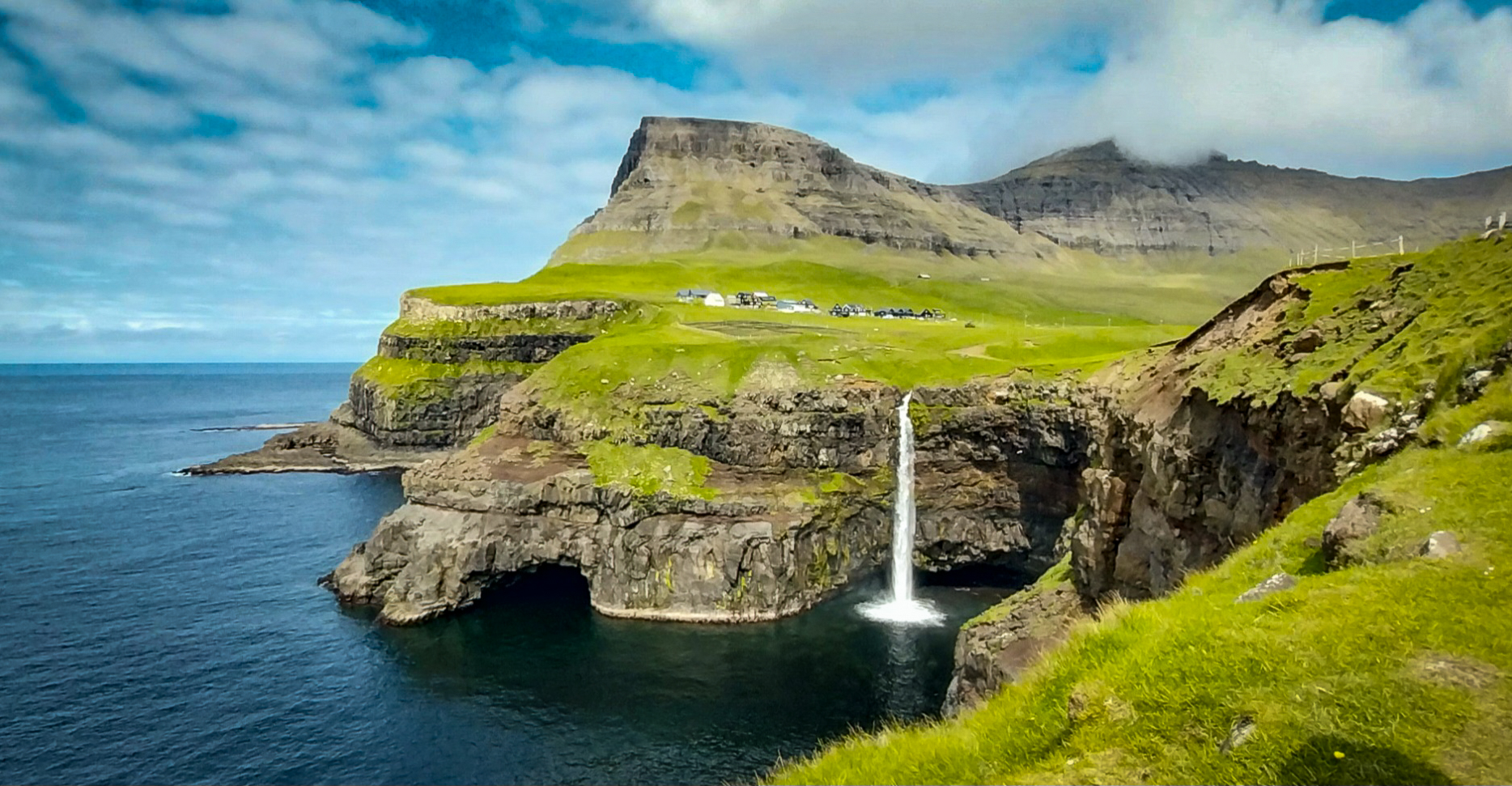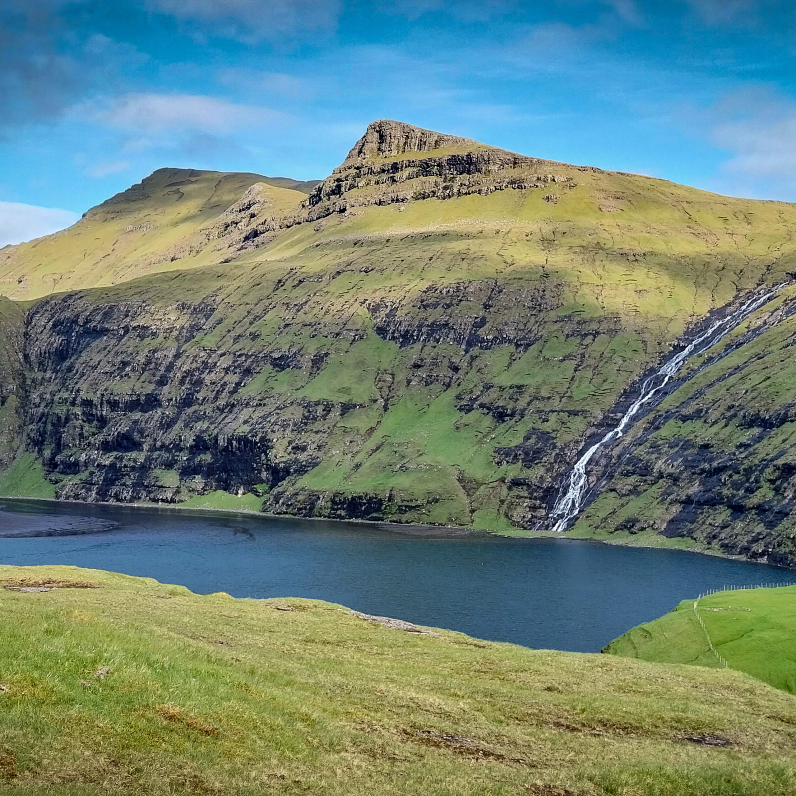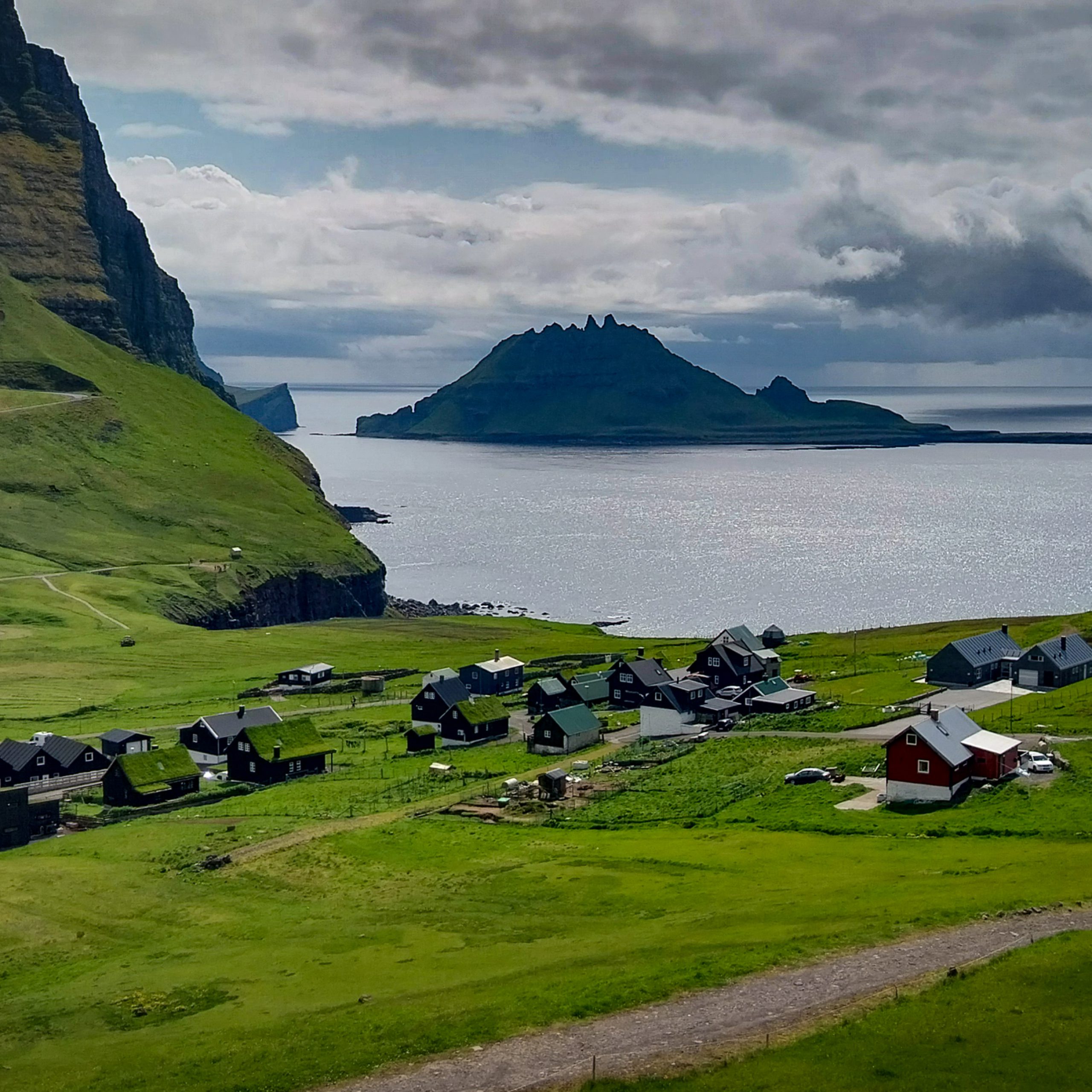 Wenn man im Internet auf der Suche nach typischen Bildern von den Färöern sucht, findet man garantiert einen See, der eine optische Illusion erzeugt. Der größte See der Färöer – Sørvágsvatn, oder auch Leitisvatn genannt, liegt nämlich etwas höher, als der Atlantik. Das faszinierende Phänomen kann man am besten vom 142 m hohen Kap Traelanipa beobachten. Außerdem sehen wir die Nachbarinseln Koltur, Hestur, Sandoy, Skúvoy, Suðuroy und die Südspitze von Streymoy. Am südlichen Ende des Sees erwartet uns der nächste Bilderbuchblick: der Bach Bøsdalaá stürzt hier als Wasserfall Bøsdalafossur 30 Meter tief ins Meer. Am Ostufer des Sees gehen wir dann zurück nach Miðvagur und fahren nach Gásadalur. Dieses wunderschöne Dorf war bis 2004 eines der isoliertesten Siedlungen der Färöer. Wir wandern auf einem historischen Pfad, der die Dörfer Bøur und Gásadalur verbunden hat. Der Blick auf Gásadalur gehört zu den schönsten Erlebnissen, die man sich nur vorstellen kann. In dem kleinen Dorf werden wir uns auch einige mittelalterliche Ruinen und den 20 Meter hohen Wasserfall Múlafossur anschauen.