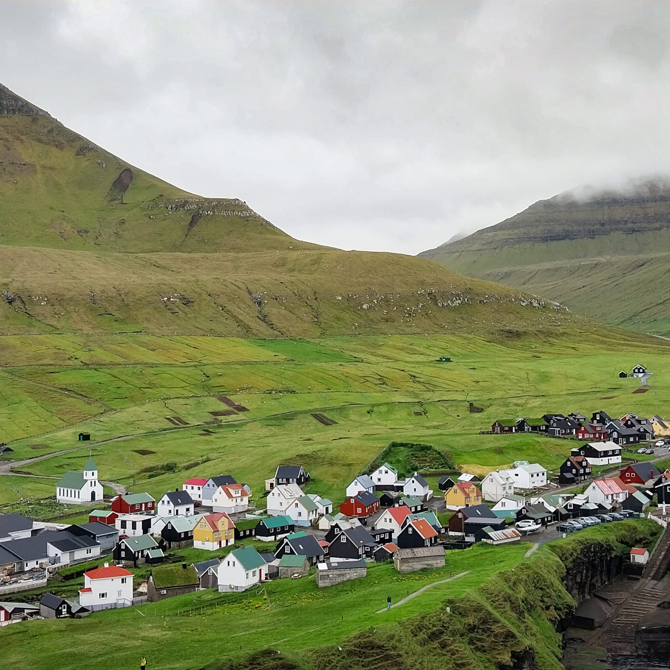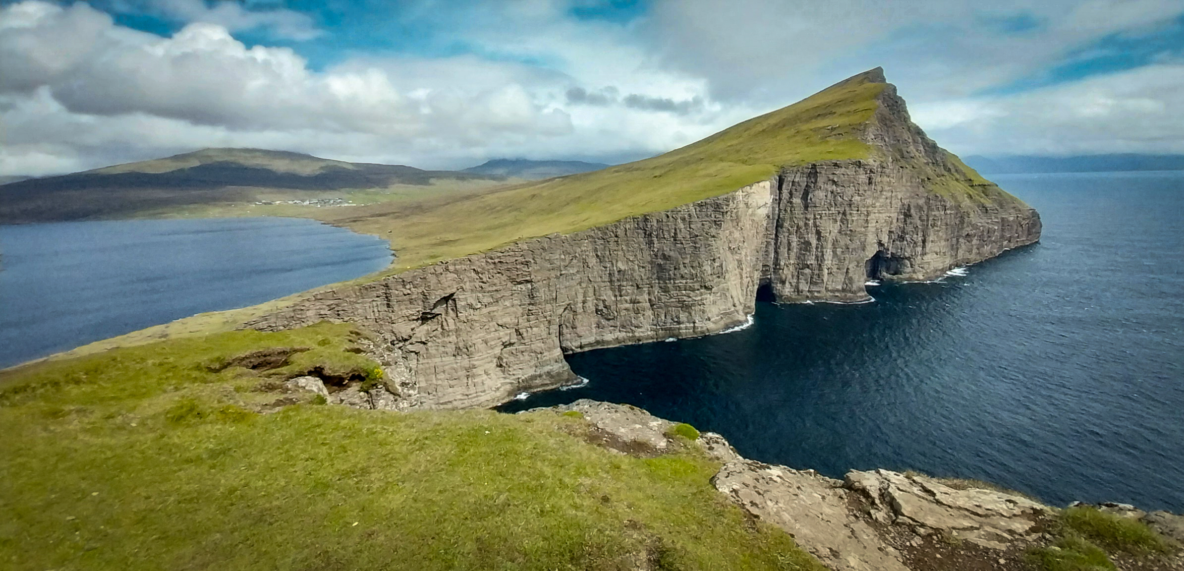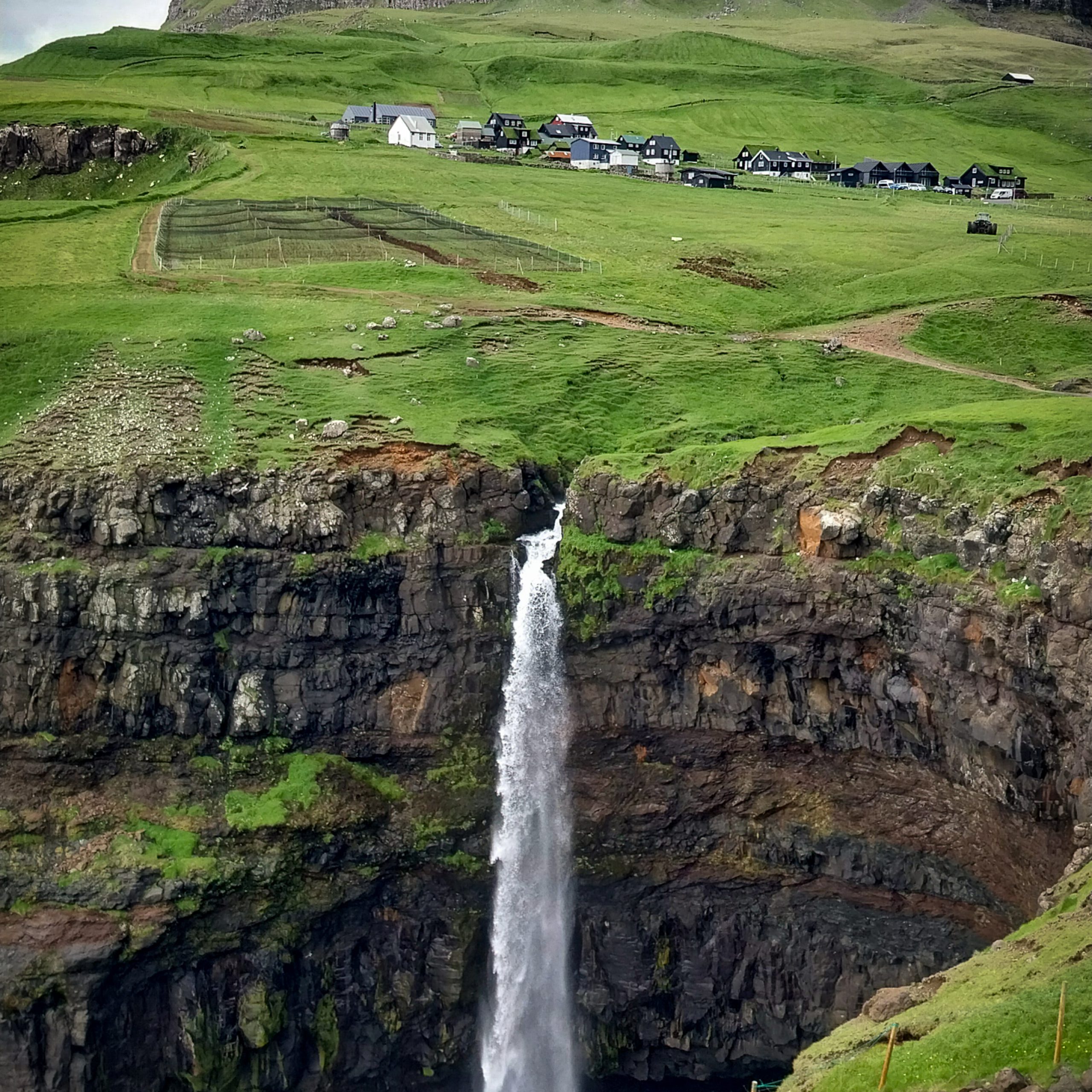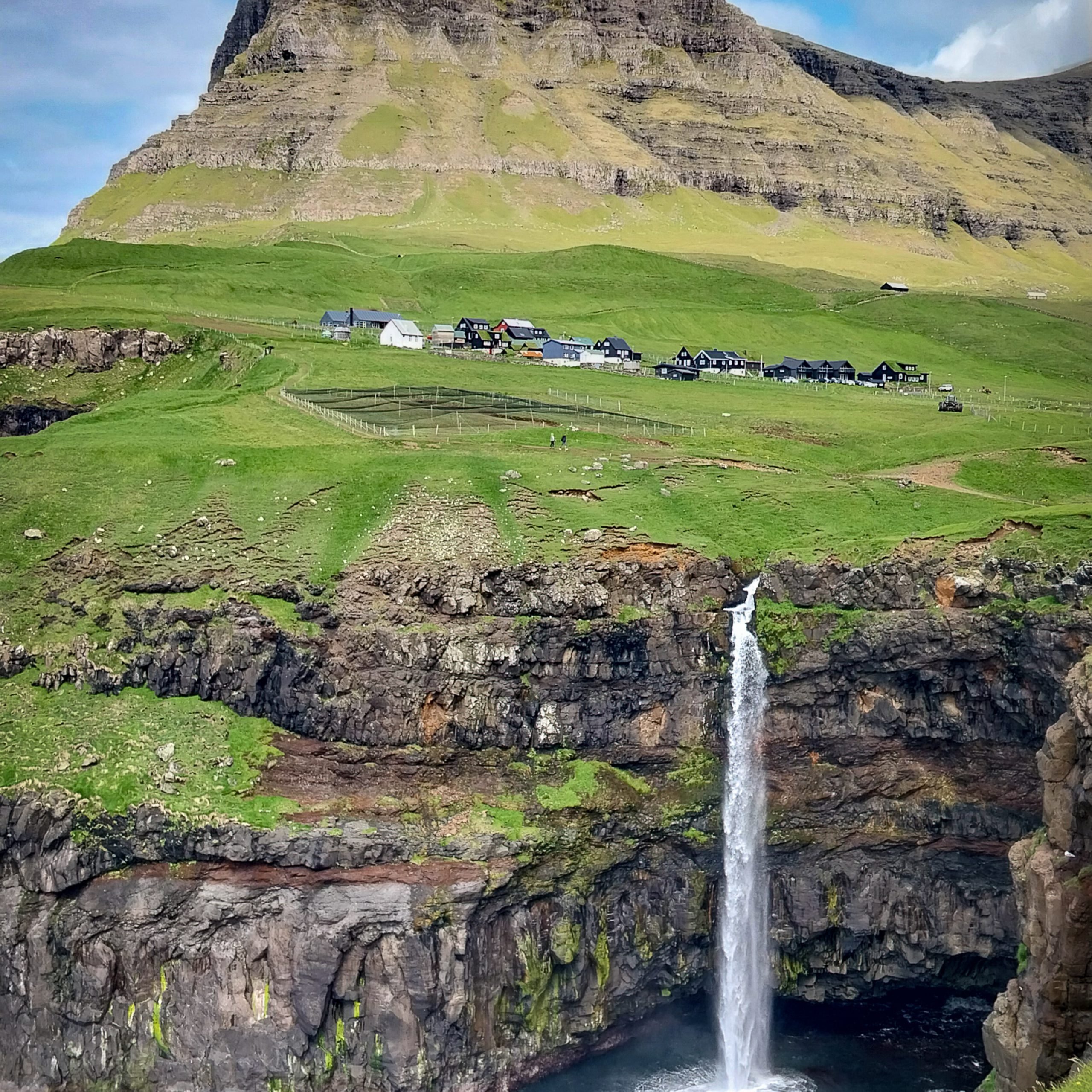 Wenn man im Internet auf der Suche nach typischen Bildern von den Färöern sucht, findet man garantiert einen See, der eine optische Illusion erzeugt. Der größte See der Färöer – Sørvágsvatn, oder auch Leitisvatn genannt, liegt nämlich etwas höher, als der Atlantik. Das faszinierende Phänomen kann man am besten vom 142 m hohen Kap Traelanipa beobachten. Außerdem sehen wir die Nachbarinseln Koltur, Hestur, Sandoy, Skúvoy, Suðuroy und die Südspitze von Streymoy. Am südlichen Ende des Sees erwartet uns der nächste Bilderbuchblick: der Bach Bøsdalaá stürzt hier als Wasserfall Bøsdalafossur 30 Meter tief ins Meer. Am Ostufer des Sees gehen wir dann zurück nach Miðvagur und fahren nach Gásadalur. Dieses wunderschöne Dorf war bis 2004 eines der isoliertesten Siedlungen der Färöer. Wir wandern auf einem historischen Pfad, der die Dörfer Bøur und Gásadalur verbunden hat. Der Blick auf Gásadalur gehört zu den schönsten Erlebnissen, die man sich nur vorstellen kann. In dem kleinen Dorf werden wir uns auch einige mittelalterliche Ruinen und den 20 Meter hohen Wasserfall Múlafossur anschauen.