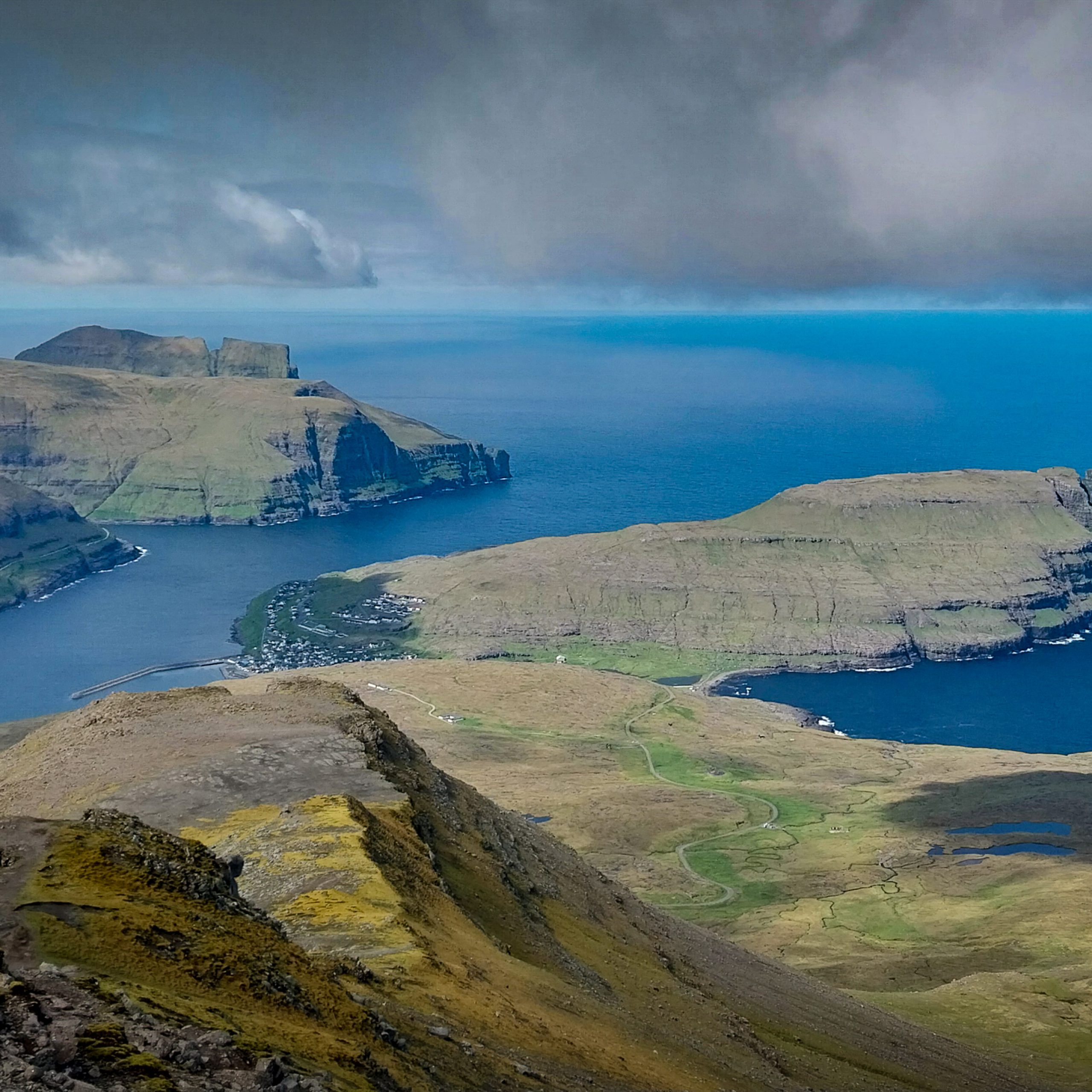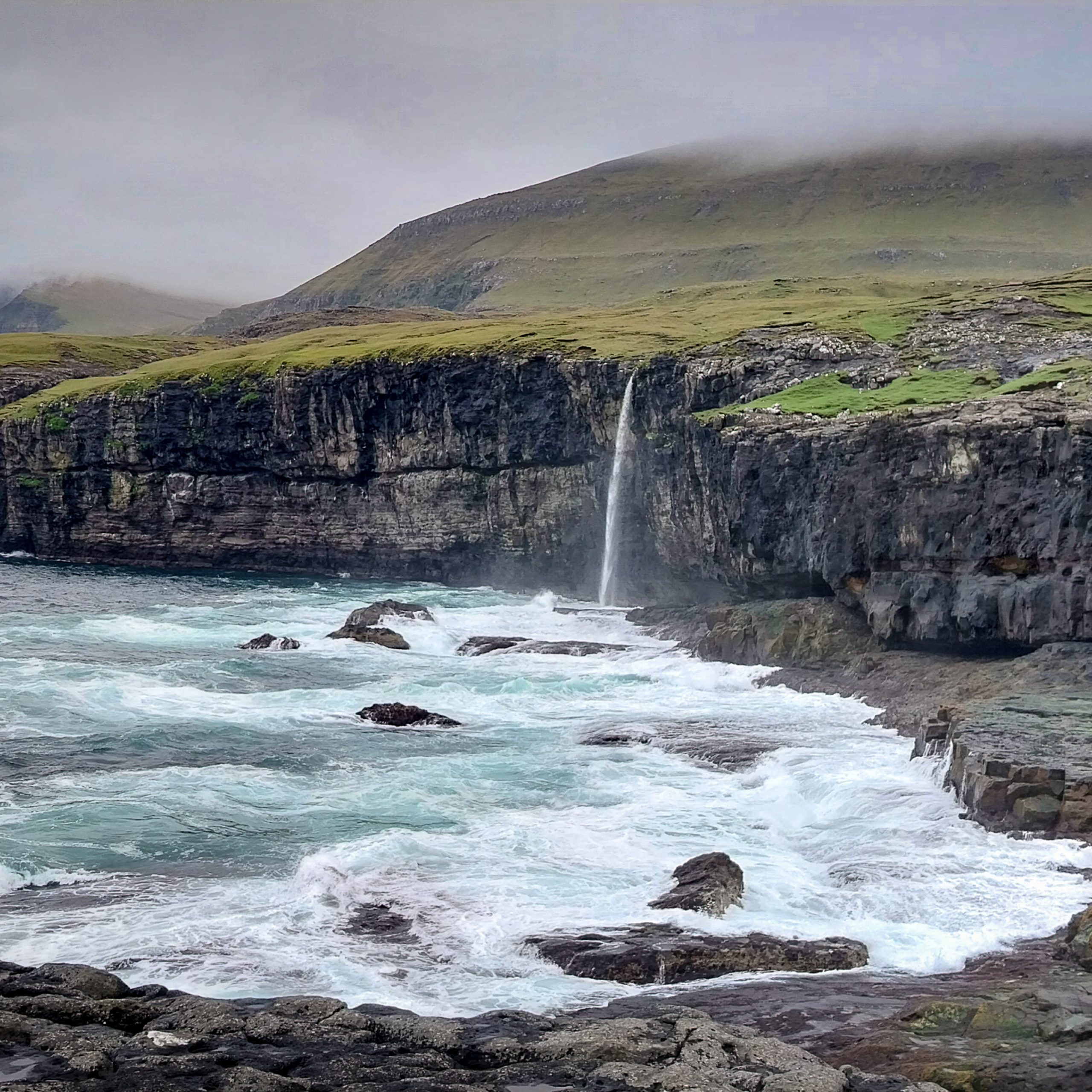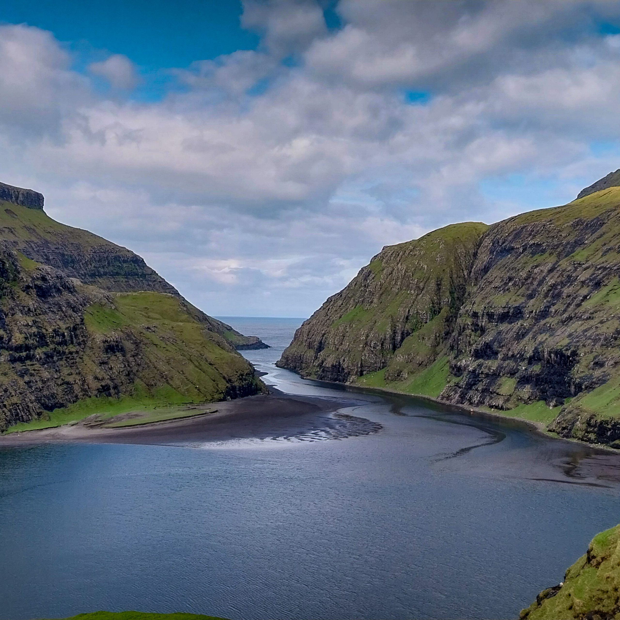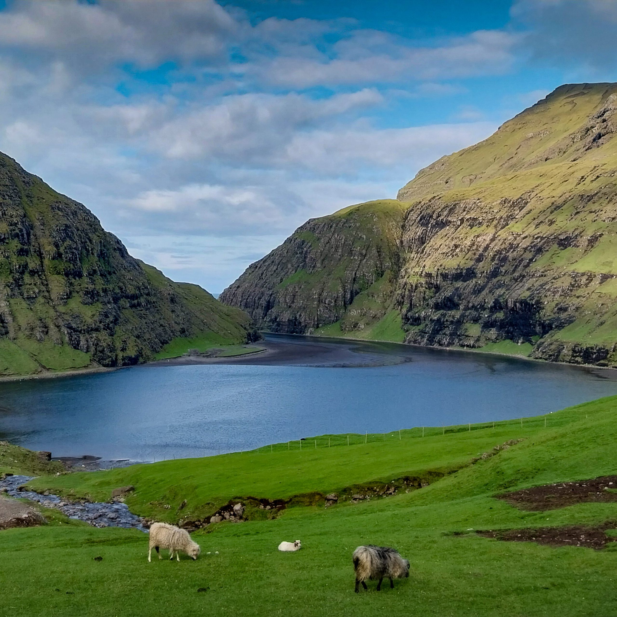 Wenn man im Internet auf der Suche nach typischen Bildern von den Färöern sucht, findet man garantiert einen See, der eine optische Illusion erzeugt. Der größte See der Färöer – Sørvágsvatn, oder auch Leitisvatn genannt, liegt nämlich etwas höher, als der Atlantik. Das faszinierende Phänomen kann man am besten vom 142 m hohen Kap Traelanipa beobachten. Außerdem sehen wir die Nachbarinseln Koltur, Hestur, Sandoy, Skúvoy, Suðuroy und die Südspitze von Streymoy. Am südlichen Ende des Sees erwartet uns der nächste Bilderbuchblick: der Bach Bøsdalaá stürzt hier als Wasserfall Bøsdalafossur 30 Meter tief ins Meer. Am Ostufer des Sees gehen wir dann zurück nach Miðvagur und fahren nach Gásadalur. Dieses wunderschöne Dorf war bis 2004 eines der isoliertesten Siedlungen der Färöer. Wir wandern auf einem historischen Pfad, der die Dörfer Bøur und Gásadalur verbunden hat. Der Blick auf Gásadalur gehört zu den schönsten Erlebnissen, die man sich nur vorstellen kann. In dem kleinen Dorf werden wir uns auch einige mittelalterliche Ruinen und den 20 Meter hohen Wasserfall Múlafossur anschauen.