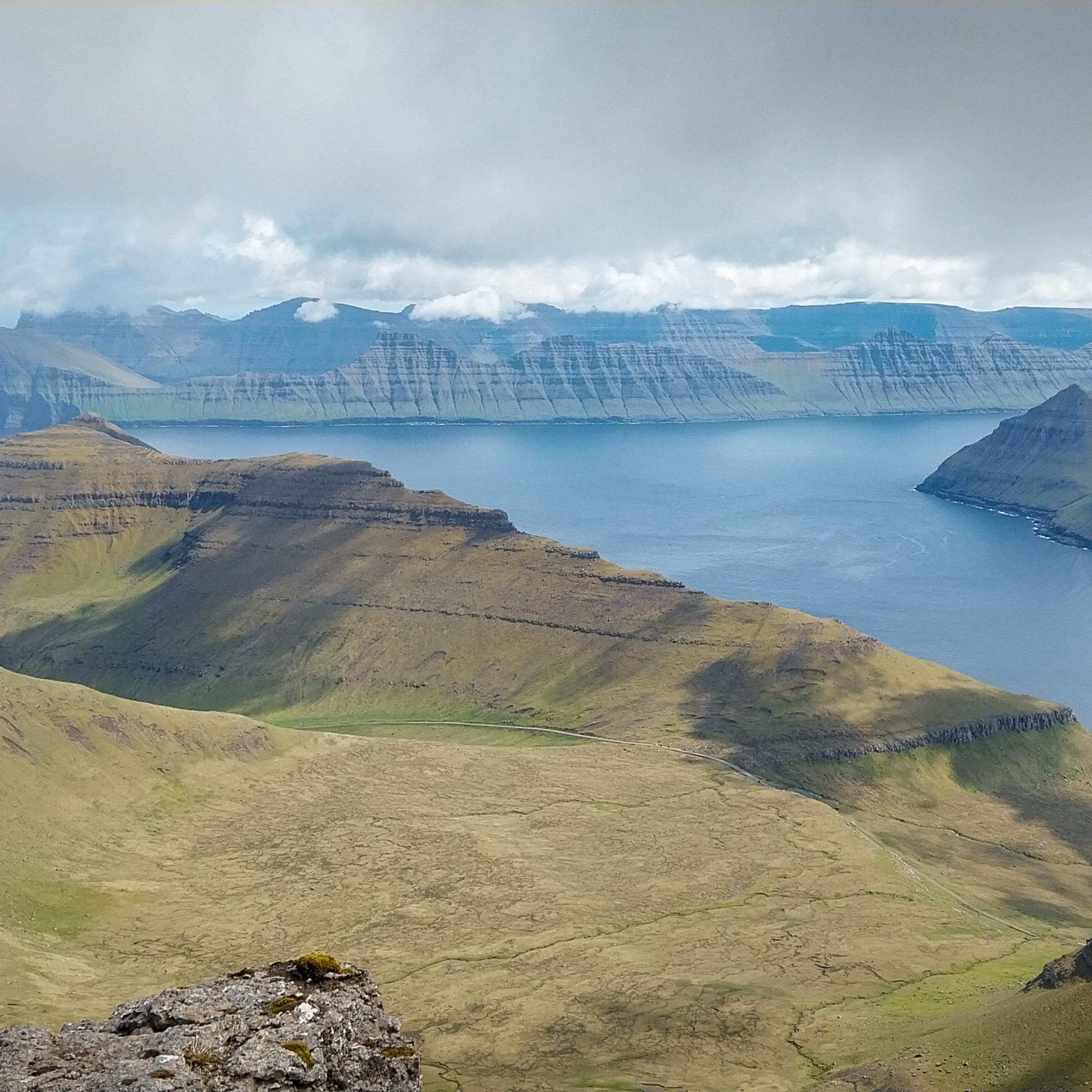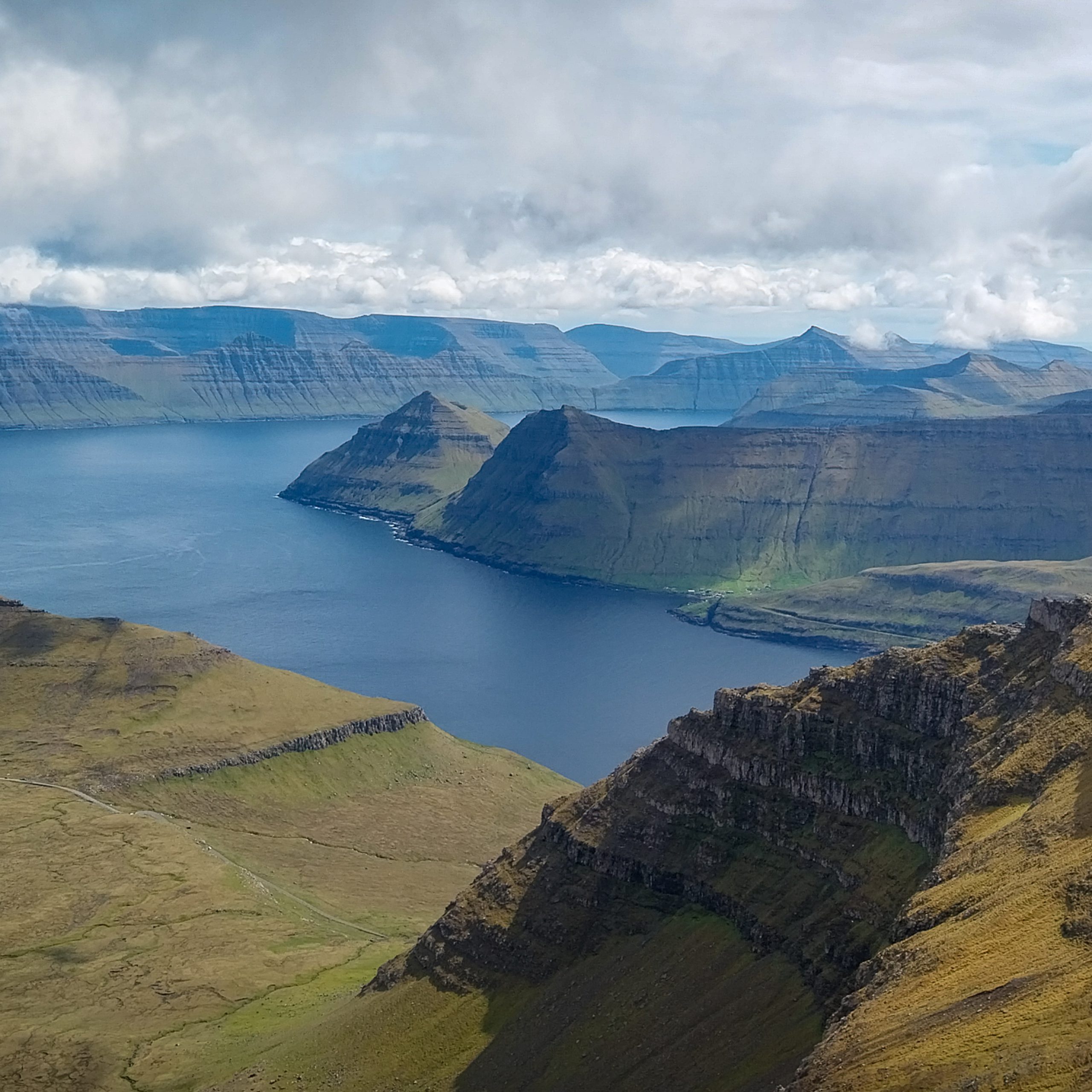 Die Insel Eysturoy ist mit ihren 66 Gipfeln ausgesprochen bergig. Von der Passhöhe Eiðiskarð zwischen Eiði und Funningur im Norden der Insel besteigen wir heute den höchsten von allen – den Slætaratindur. Der Gipfel ist einfach ein Muss bei einem Besuch der Färöer. In der Höhe von 882 Metern erleben wir einen besonders spektakulären Blick. An klaren Tagen reicht die Aussicht praktisch über den gesamten Archipel. Man sagt, dass man manchmal den 550 km entfernten Gletscher Vatnajökull in Island sehen kann. Bergab nehmen wir denselben Weg zur Passhöhe Eiðiskarð, von der wir anschließend bis zum nordwestlichen Winkel von Eysturoy fahren. Dort, an der Meerenge Sundini, liegt das kleine Dorf Eiði. Die Wendestelle am Ende der Straße "Mainifløta" ist der Ausgangspunkt für die Besteigung des 352 m hohen Eiðiskollur. Die Anstrengung nehmen sehr gerne Vogelfreunde auf sich, denn die Steilküste ist ein natürlicher Lebensraum vieler Vogelarten. Von oben sehen wir u.A. die bekannten Felsen Risin og Kellingin, oder auch die beiden höchsten Gipfel der Färöer, Slættaratindur und Gráfelli. Auf dem Rückweg machen wir noch einen kurzen Abstecher zum See Niðara. Den Nachmittag verbringen wir in Gjógv. Wir sehen uns u.A. eine tiefe, 200 m lange Schlucht an, welche heute als Naturhafen dient.