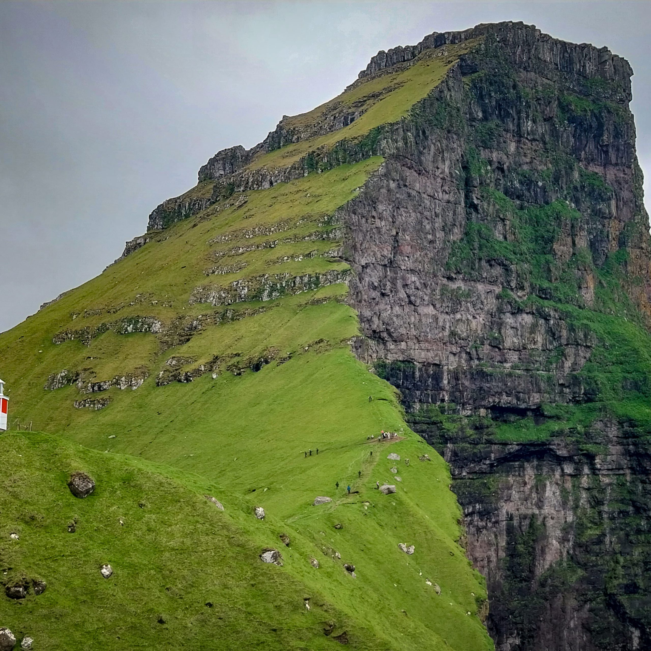 Kalsoy heißt wortwörtlich „Männerinsel“ und ist nur mit der Fähre von Klaksvík erreichbar. Die Wanderung beginnt in Trøllanes, einem kleinen Dorf im Norden der Insel. Die Einheimischen nennen die Insel wegen der vielen Tunnels, über die die langgestreckte Insel verfügt, auch „Blockflöte“. Auf dem Weg zum Leuchtturm Kallur, der ein absolutes Highlight ist, gibt es tolle Panorama-Blicke übers Meer. Den zweiten Teil der heutigen Wanderung bildet die Besteigung des 537 m hohen Borgarin. Der ungehinderte Blick von seinem flachen Gipfel auf die umliegende Landschaft ist einfach unvergesslich. Alternativ kann man vom Leuchtturm denselben Weg zum Startpunkt nehmen. Im Hauptort der Insel – Mikladalur, sehen wir uns auch die legendäre Robbenfrau an und lernen ihre Geschichte kennen.