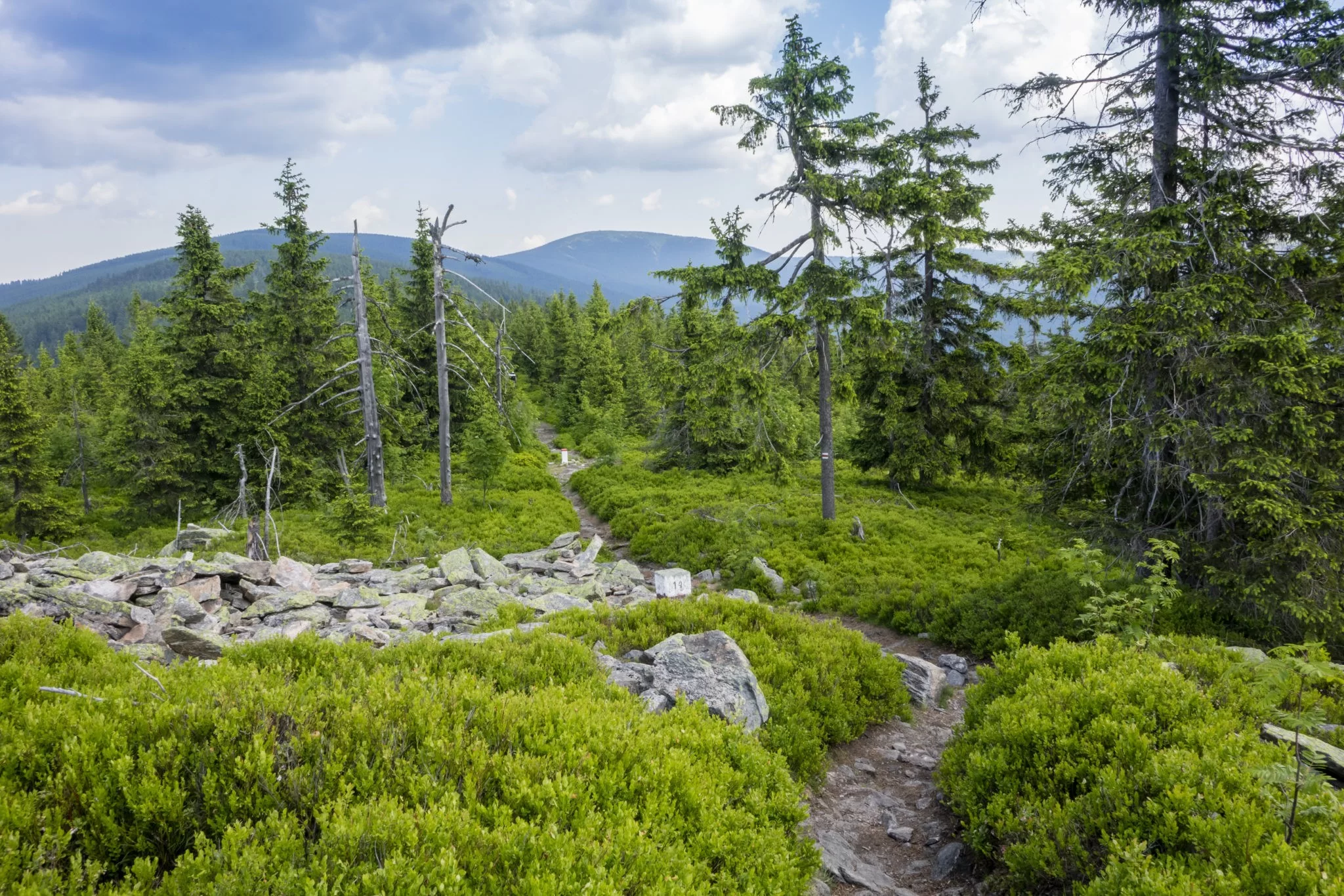 Wir machen heute eine schöne Wanderung im dritthöchsten Gebirge Tschechiens, im Massiv von Králický Sněžník und besteigen auch den gleichnamigen Gipfel. Hier führt die wichtigste europäische Wasserscheidelinie, die Grenze zwischen den Einzugsgebieten der Nordsee, der Ostsee und des Schwarzen Meeres. Unterhalb des Gipfels entspringt die March.